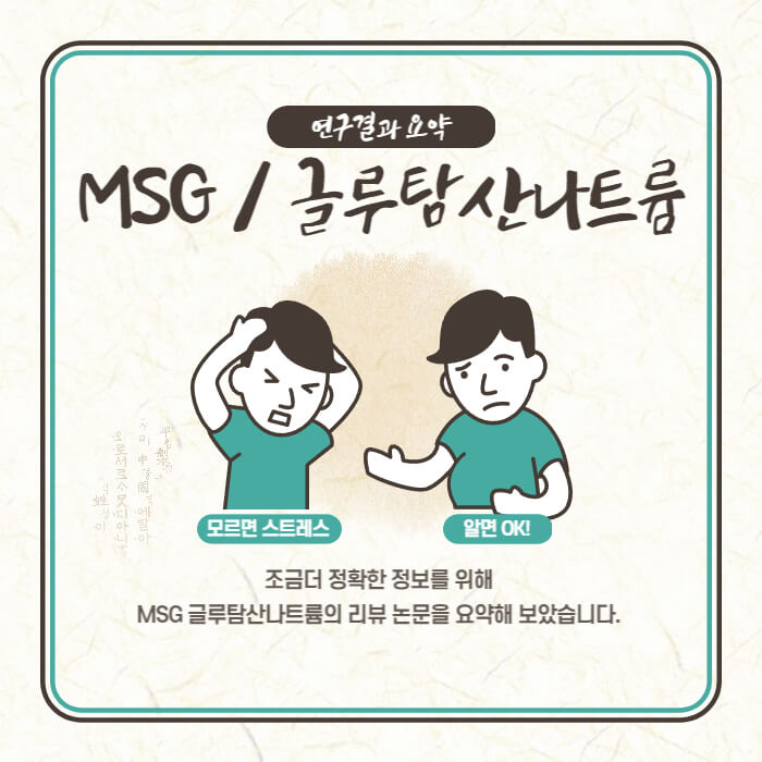 MSG는 음식에 "맛"을 부여하는 향미증진제입니다. 이것은 다양한 식품에서 발견되는 자연적으로 생성되는 아미노산인 L-글루탐산에서 유래되었습니다. 식품 안전 규제 기관들에 의해 일반적으로 안전한 것으로 인식되고 있음에도 불구하고, 몇몇 연구들은 장기적인 안전성에 의문을 제기해 오고 있습니다. 오늘 알아볼 논문에서는 "글루탐산나트륨의 건강 위해성에 대한 주장에 대한 리뷰"라는 제목의 리뷰논문입니다. 이러한 리뷰 논문을 통해서, MSG에 대한 만성적인 노출로 인해 발생할 수 있는 잠재적 위험에 대한 알아보도록 합시다. 단, MSG의 잠재적인 부작용을 탐구한 임상 및 임상의 광범위한 연구를 포함하고 있습니다만, 연구는 일상생활과 100% 직접적이진 않습니다.